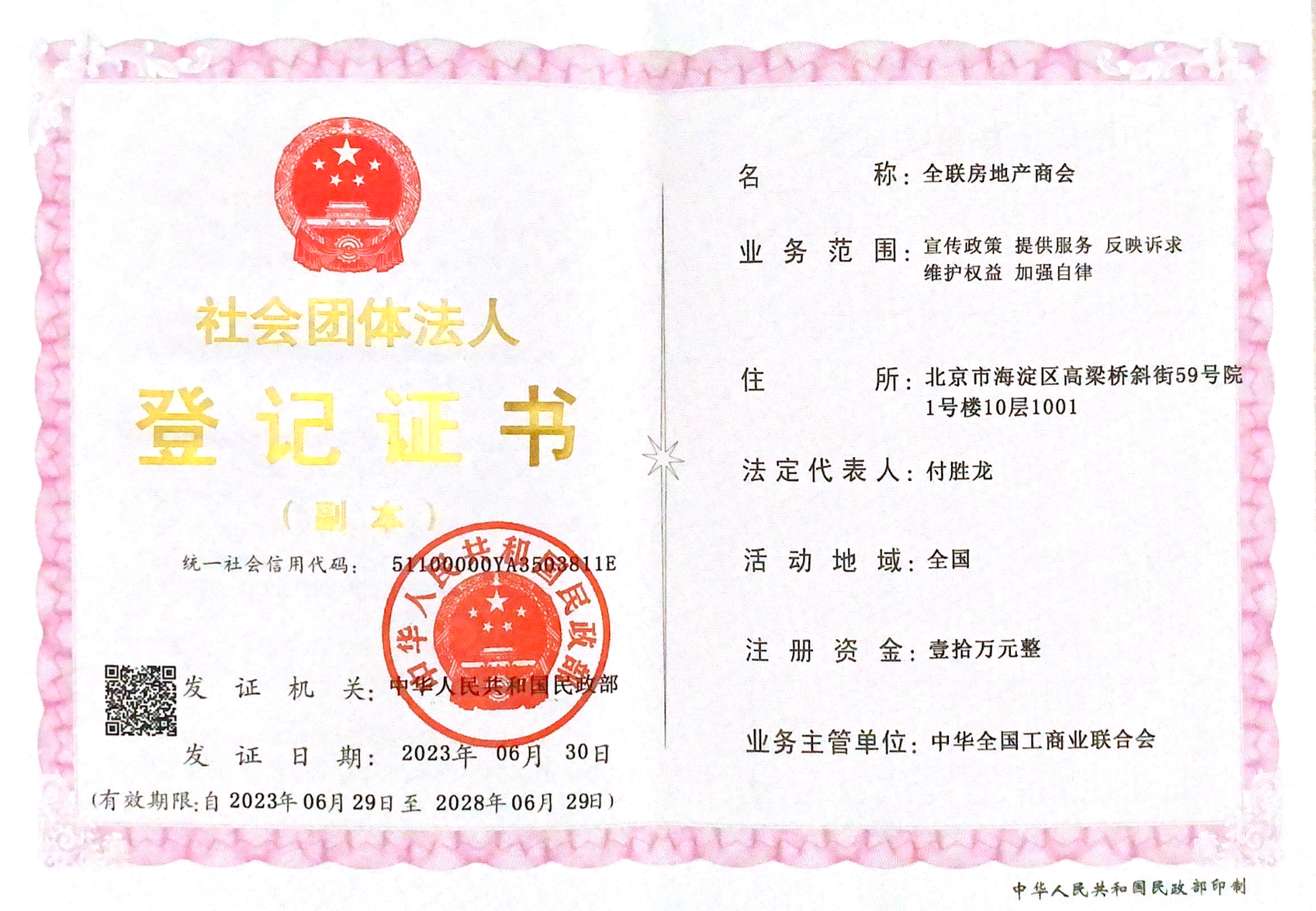 全联房地产商会成立于2001年10月30日,原名全国工商联房地产商会,2012年7月23日,在民政部注册登记为国家一级社团法人,并正式更名为全联房地产商会。